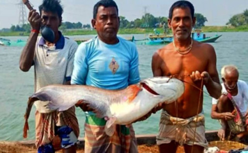 নৌকার অন্য জেলে বীরেন্দ্র বর্মন বলেন, ‘আমাদের জালে ধরা পড়া মাছটির ওজন প্রায় ২৫ কেজি। ৭৫০ টাকা কেজি দরে এটি বিক্রি করেছি। তিতাস নদীতে এত বড় মাছ সচরাচর কম ধরা পড়ে। সৌভাগ্যক্রমে এই মাছটি জালে লেগেছে।’ এত বড় মাছ ধরা পড়াতে উচ্ছ্বাস প্রকাশ করেন তিনি।