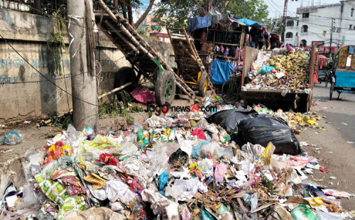 রাজধানীর মিরপুর-১০ নম্বর সেকশনের সেনপাড়া পর্বতা সরকারি প্রাথমিক বিদ্যালয়ের সামনের সড়কে দীর্ঘদিন ধরে ময়লা-আবর্জনা ফেলা হচ্ছে। ময়লার দুর্গন্ধে পড়াশোনা করতে এবং বিদ্যালয়ের মাঠে খেলতে অসুবিধা হচ্ছে শিক্ষার্থীদের।