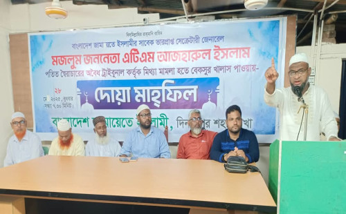 বাংলাদেশ জামায়াতে ইসলামীর সাবেক ভারপ্রাপ্ত সেক্রেটারি জেনারেল মজলুম জননেতা এটিএম আজহারুল ইসলাম পতিত অবৈধ স্বৈরাচারের ট্রাইবুনাল কর্তৃক মিথ্যা মামলা হতে বেকসুর খালাস পাওয়ায় দিনাজপুর শহর জামায়াতের উদ্যোগে আলোচনা সভা ও দোয়া মাহফিল অনুষ্ঠিত হয়েছে।
